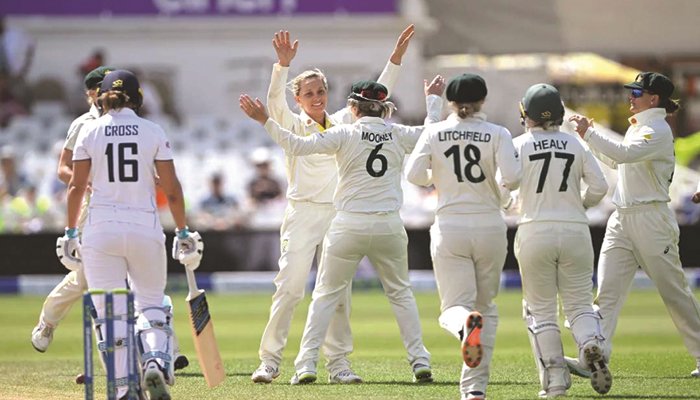 এর আগে একমাত্র টেস্টটির প্রথম ইনিংসে অস্ট্রেলিয়া আগে ব্যাট করে অ্যানাবেল সাদারল্যান্ডের সেঞ্চুরিতে স্কোরবোর্ডে ৪৭৩ রান করেছিল। এছাড়া অলরাউন্ডার এলিসে পেরিও (৯৯) সেঞ্চুরি থেকে ১ রান দূরত্বে আউট হয়েছিলেন। জবাবে ওপেনার বিউমন্টের ডাবল সেঞ্চুরিতে ইংলিশ মেয়েরা করে ৪৬৩ রান। দ্বিতীয় ইনিংসে অস্ট্রেলিয়া আরও যোগ করে ২৫৭ রান। ফলে ইংল্যান্ডের সামনে জয়ের লক্ষ্য দাঁড়ায় ২৬৮ রান। কিন্তু অজি স্পিনার গার্ডনারের তোপেই ১৭৮ রানে গুঁড়িয়ে যায় ইংলিশরা। এরপর তিনটি টি-২০ ম্যাচের সিরিজে মুখোমুখি হবে এই দুই দল।