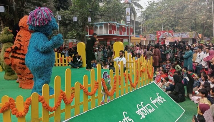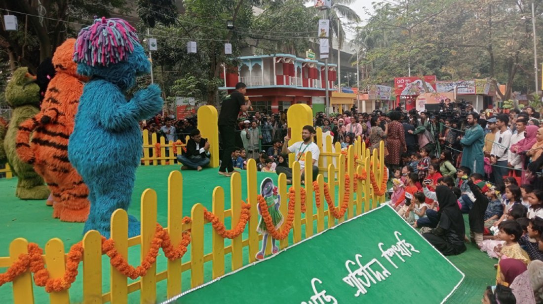 অমর একুশে বইমেলার দ্বিতীয় দিনের শুরুটা ছিল শিশুদের জন্য। আয়োজক বাংলা একাডেমির সিদ্ধান্ত অনুযায়ী সাপ্তাহিক ছুটির দিন হওয়ায় শুক্রবার (২ ফেব্রুয়ারি) সকালে বইমেলার শিশু চত্বরে আয়োজন করা হয় শিশুপ্রহর। এসময় বিশেষ আয়োজনে জনপ্রিয় শিক্ষামূলক টেলিভিশন ধারাবাহিক সিসিমপুরের হালুম, টুকাটুকি, ইকরি, শিকুর সঙ্গে নাচে-গানে মেতে ওঠে শিশুরা। এদিন সকাল সাড়ে ১১টা নাগাদ সোহরাওয়ার্দী উদ্যানে শিশু চত্বরে ‘শিশু প্রহর’ উদ্বোধন করেন বাংলা একাডেমির মহাপরিচালক কবি মুহম্মদ নূরুল হুদা। এসময় মঞ্চে উপস্থিত ছিলেন ইউএসএইডের বাংলাদেশের পরিচালক (শিক্ষা) সোনিয়া রেনল্ডস কুপার, বই মেলার সদস্য সচিব কে এম মুজাহিদুল ইসলাম ও অন্যরা। উদ্বোধনকালে কবি নূরুল হুদা শিশুদের উদ্দেশে বলেন, ‘আমরা বঙ্গবন্ধুর বাংলাদেশকে বই পড়ার বাংলাদেশে পরিণত করতে চাই। আমরা বই পড়ে বাংলাদেশকে বই পড়ার দেশে পরিণত করতে পারবো, সারা বিশ্বকে বই পড়ার বিশ্বে পরিণত করতে পারবো। সারা পৃথিবীকে একটি দেশে পরিণত করতে হলে বই পড়তে হবে।’ তিনি আরও বলেন, ‘প্রতিটি শিশুকে জন্মের পর থেকে শব্দের সঙ্গে পরিচিত করতে হবে। সিসিমপুর কোনও একটি ভাষার শব্দ নয়, সব ভাষার শব্দ, সিসিমপুর সারা বিশ্বের শব্দের সঙ্গে শিশুদের পরিচয় করিয়ে আসছে।’ পরে শিশুদের করতালির মাঝে মঞ্চে প্রবেশ করে প্রিয় চরিত্র হালুম, টুকটুকি, ইকড়ি ও শিকু। টেলিভিশনে দেখা চরিত্রগুলোকে কাছে পেয়ে খুশি শিশুরাও। নাচ, গান ও খেলায় আনন্দঘন একটি মুহূর্ত পার করে শিশুরা। কথা হয় শিশুপ্রহরে মেলায় অংশ নেওয়া ৫ বছর বয়সী আনিসার সঙ্গে। কেমন লাগছে জানতে চাইলে আনিসা বলেন, ‘অনেক ভালো লাগছে। আমার পছন্দ ইকরি। ইকরিকে দেখেছি, এখন তার সঙ্গে ছবিও তুলবো।’ রাজধানীর মোহাম্মদপুর থেকে ৪ বছর বয়সী ছেলে আয়ানকে সঙ্গে নিয়ে বইমেলায় এসেছেন সাইফুল আকন্দ। তিনি বলেন, ‘শুক্রবার ছুটির দিন হওয়ায় ছেলেকে নিয়ে মেলায় এসেছি। ওর পছন্দের বই কিনবো। আর ছেলে সিসিমপুর পছন্দ করে। হালুম-শিকুকে দেখে সে অনেক খুশি।’ তবে মেলার প্রথম শিশুপ্রহরে শিশু ও অভিভাবকদের আশানুরূপ উপস্থিতি ছিল না বলে জানিয়েছেন শিশু চত্বরের বিক্রয় কর্মীরা। তারা বলছেন, এমনিতে মেলার শুরুর দিক, তারওপর বৃষ্টিও প্রভাব ফেলেছে উপস্থিতিতে। তবে দুপুরের পর উপস্থিতি বাড়বে বলে প্রত্যাশা করছেন তারা। শৈশব প্রকাশ স্টলের বিক্রয়কর্মী রোমানা আক্তার বলেন, সারা সপ্তাহ স্কুল করে ছুটির দিন শিশুরা ঘুমাবে স্বাভাবিক। দুয়েকজন করে আসছে, বই দেখছে। তবে বেলা ১২টা পর্যন্ত তেমন কোনও বই বিক্রি হয়নি। আশা করছি বিকালের দিকে ক্রেতা সমাগম বাড়বে। সিসিমপুর স্টলে ৩ বছরের আরাধ্যকে কোলে নিয়ে বই দেখছিলেন স্বপ্নীল সাহা। তিনি বলেন, ‘ছেলে এখন