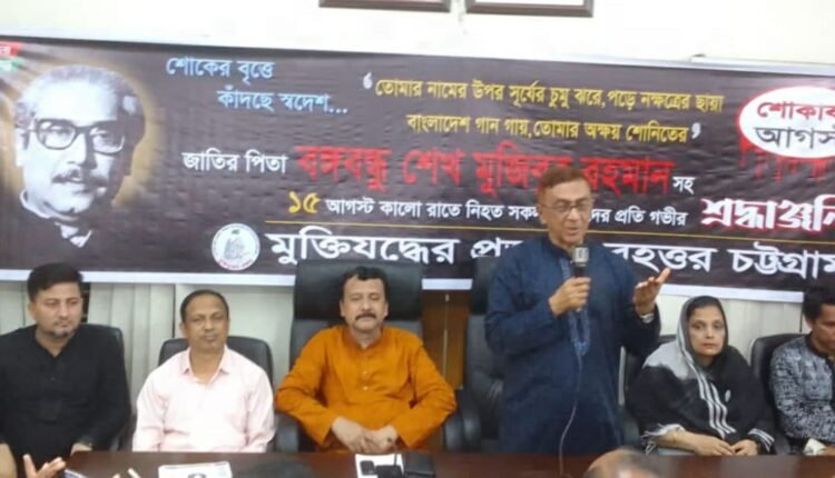 শুক্রবার (২৫ আগস্ট) বিকেলে চট্টগ্রাম নগরীর দোস্তবিল্ডিংস্থ কার্যালয়ে মুক্তিযুদ্ধের প্রজন্ম- বৃহত্তর চট্টগ্রাম আয়োজিত জাতীয় শোক দিবসের আলোচনা সভায় প্রধান অতিথির বক্তব্যে তিনি একথা বলেন।