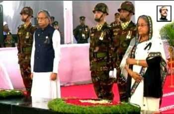 বঙ্গবন্ধুর প্রতিকৃতিতে রাষ্ট্রপতি ও প্রধানমন্ত্রীর শ্রদ্ধা