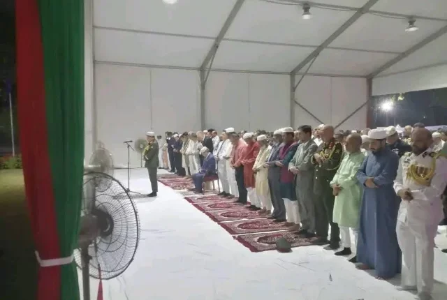 এদিন ইফতারের পর অতিথিরা অনুষ্ঠানস্থলে অস্থায়ী শেডে মাগরিবের নামাজ আদায় করেন। এসময় নামাজে ইমামতি করেন সেনাবাহিনী প্রধান।
