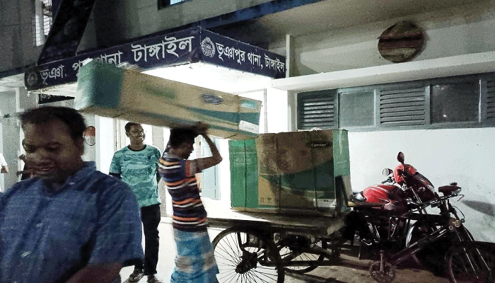 টাঙ্গাইলের ভূঞাপুর থানা পুলিশের ভারপ্রাপ্ত কর্মকর্তা (ওসি) মুহাম্মদ ফরিদুল ইসলাম বদলি হওয়ায় থানার এসি, টেলিভিশন, আইপিএস ও সোফা নিয়ে গেছেন।