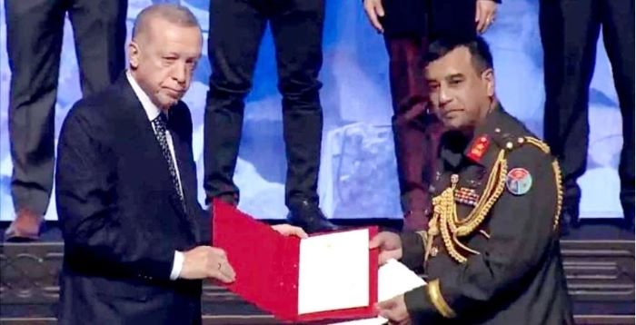 আইএসপিআর জানিয়েছে, মঙ্গলবার তুরস্কের প্রেসিডেন্ট রিসেপ তাইপ এরদোয়ানের হাত থেকে এই বিশেষ সম্মাননা গ্রহণ করেন তুরস্কে নিযুক্ত বাংলাদেশ সেনাবাহিনীর ডিফেন্স অ্যাটাশে ব্রিগেডিয়ার জেনারেল মোহাম্মদ রাশেদ ইকবাল ও উদ্ধারকারী দলের প্রধান লেফটেন্যান্ট কর্নেল মো. রুহুল আমিন।