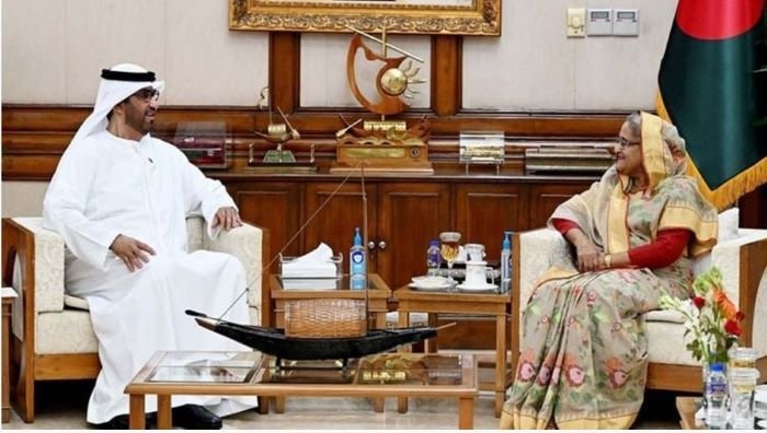 বৈঠক শেষে আমিরাতের মন্ত্রীকে উদ্ধৃত করে প্রধানমন্ত্রীর প্রেস সচিব ইহসানুল করিম বলেন, আমরা প্রচলিত জ্বালানির পাশাপাশি জ্বালানি খাতে বিশেষ করে নবায়নযোগ্য জ্বালানির প্রতি খুবই আগ্রহী।