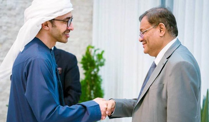 আমিরাতের আল আইন শহরে তার রাজকীয় প্রাসাদে স্থানীয় সময় শুক্রবার সন্ধ্যায় পররাষ্ট্রমন্ত্রী ড. হাছান মাহমুদের সঙ্গে দ্বিপাক্ষিক বৈঠকে মন্ত্রী শেখ আবদুল্লাহ বাংলাদেশের সঙ্গে অর্থনৈতিক অংশীদারত্বের জন্য কম্প্রিহেনসিভ ইকোনমিক পার্টনারশিপ এগ্রিমেন্ট (সিইপিএ) স্বাক্ষর ও জয়েন্ট বিজনেস কাউন্সিল (জেবিসি) সক্রিয় করার প্রয়োজন উল্লেখ করে এ গুরুত্বারোপ করেন। বৈঠকের শুরুতে পররাষ্ট্রমন্ত্রী ড. হাছান দু-দেশের কূটনৈতিক সম্পর্কের ৫০ বছর পূর্তি উপলক্ষে সংযুক্ত আরব আমিরাতের রাষ্ট্রপতিকে বাংলাদেশ সফরের আমন্ত্রণ জানিয়ে প্রধানমন্ত্রী শেখ হাসিনার আমন্ত্রণপত্র হস্তান্তর করেন। এসময় তিনি বাংলাদেশ ও সংযুক্ত আরব আমিরাতের জাতির পিতার প্রতিষ্ঠিত দুই ভ্রাতৃপ্রতিম দেশের ঐতিহাসিক বন্ধনের কথা স্মরণ করে গত পাঁচ দশকে ইউএই’র অভূতপূর্ব অগ্রগতির জন্য সংযুক্ত আরব আমিরাতের নেতৃত্বের প্রশংসা করেন এবং প্রধানমন্ত্রী শেখ হাসিনার নেতৃত্বে বাংলাদেশের অসামান্য অর্জনগুলো তুলে ধরেন। উভয় মন্ত্রী বিদ্যমান দ্বিপাক্ষিক সহযোগিতার পুরো বিষয় পর্যালোচনাকালে জ্বালানি নিরাপত্তা, খাদ্য নিরাপত্তা, পরিবেশ ও জলবায়ু পরিবর্তন, নবায়নযোগ্য জ্বালানি, জনগণের মধ্যে যোগাযোগ, দ্বিপাক্ষিক বাণিজ্য বৃদ্ধিসহ নতুন উদীয়মান ক্ষেত্র খোঁজার ওপর জোর দেন। পররাষ্ট্রমন্ত্রী হাছান বাংলাদেশে ইউএই’র বিনিয়োগ বৃদ্ধি করতে মাতারবাড়ি এক্সক্লুসিভ ইকোনমিক জোন, বন্দর ও লজিস্টিক ব্যবস্থাপনা, চট্টগ্রামে হাছান মাহমুদের নিজ এলাকা রাঙ্গুনিয়ায় আধুনিক ইউএইর প্রতিষ্ঠাতা শেখ জায়েদ ইবনে সুলতান আল নাহিয়ানকে উপহার দেওয়া জমির উন্নয়নে সংযুক্ত আরব আমিরাত সরকার এবং ব্যবসায়ীদের জন্য সম্ভাব্য বিনিয়োগ প্রস্তাব তুলে ধরলে ইউএই’র পররাষ্ট্রমন্ত্রী চলমান বিনিয়োগ ও অর্থনৈতিক বিষয়গুলো এগিয়ে নেওয়ার আগ্রহ প্রকাশ করেন। দুই নেতা রোহিঙ্গা প্রত্যাবাসন এবং চলমান গাজা যুদ্ধ বন্ধের উদ্যোগসহ নানান আঞ্চলিক বিষয়ে মতবিনিময় করেন। সংযুক্ত আরব আমিরাতে নিযুক্ত বাংলাদেশের রাষ্ট্রদূত মো. আবু জাফর এবং পররাষ্ট্র মন্ত্রণালয়ের পশ্চিম এশিয়া শাখার মহাপরিচালক মো. শফিকুর রহমান বৈঠকে উপস্থিত ছিলেন।