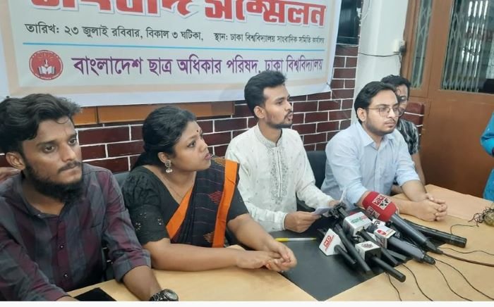সংবাদ সম্মেলনে আসিফ মাহমুদ বলেন, বাংলাদেশ ছাত্র অধিকার পরিষদ কোটা সংস্কার আন্দোলনের মাধ্যমে ঢাকা বিশ্ববিদ্যালয় থেকে গড়ে ওঠা একটি ছাত্র সংগঠন। কোনো প্রকার দলীয় লেজুড়বৃত্তি না করে শিক্ষার্থীদের অধিকার আদায়ে সোচ্চার থাকাই ছিল যার অন্যতম লক্ষ্য ও উদ্দেশ্য। বাংলাদেশ ছাত্র অধিকার পরিষদের প্রতিষ্ঠার ঘোষণাপত্র, গঠনতন্ত্রের প্রস্তাবনা ও অনুচ্ছেদ ৮ (লক্ষ্য ও উদ্দেশ্য) এর ১নং ধারায় দলীয় দাসত্ব ও লেজুড়বৃত্তিক ছাত্র রাজনীতির বাইরে স্বাধীন ধারায় ছাত্র রাজনীতি চর্চার মাধ্যমে ছাত্রদের যৌক্তিক দাবি ও ন্যায়সংগত অধিকার আদায়ে সোচ্চার ভূমিকা পালন করার কথা বলা হয়েছে।