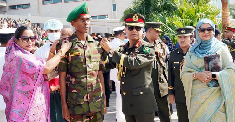 বাংলাদেশ মিলিটারি একাডেমির (বিএমএ) ৮৫তম বিএমএ দীর্ঘমেয়াদি কোর্সের অফিসার ক্যাডেটদের কমিশনপ্রাপ্তি উপলক্ষে রাষ্ট্রপতি কুচকাওয়াজ অনুষ্ঠিত হয়েছে। সোমবার (৪ ডিসেম্বর) চট্টগ্রামের ভাটিয়ারির বিএমএ প্যারেড গ্রাউন্ডে এ কুচকাওয়াজ অনুষ্ঠিত হয়। এতে প্রধান অতিথি হিসেবে কুচকাওয়াজ পরিদর্শন ও প্যারেডের অভিবাদন গ্রহণ করেন বাংলাদেশ সেনাবাহিনী প্রধান জেনারেল এসএম শফিউদ্দিন আহমেদ। পরে তিনি কৃতি ক্যাডেটদের মাঝে পুরস্কার বিতরণ করেন। আন্তঃবাহিনী জনসংযোগ পরিদপ্তরের (আইএসপিআর) পাঠানো এক সংবাদ বিজ্ঞপ্তিতে এ তথ্য জানানো হয়। সেনাবাহিনী প্রধান প্রশিক্ষণ সমাপনকারী ক্যাডেটদের উদ্দেশে সর্বকালের সর্বশ্রেষ্ঠ বাঙালি জাতির পিতার দিকনির্দেশনামূলক ঐতিহাসিক ভাষণের কথা স্মরণ করিয়ে দিয়ে বলেন, আজ এই শপথ গ্রহণের মধ্য দিয়ে তোমাদের ওপর ন্যস্ত হলো দেশের স্বাধীনতা ও সার্বভৌমত্ব রক্ষার পবিত্র দায়িত্ব। তিনি জাতির জনকের হাতে গড়া সেনাবাহিনীকে একটি প্রশিক্ষিত, সুশৃঙ্খল এবং আধুনিক সমরাস্ত্রে সজ্জিত বাহিনী হিসেবে গড়ে তোলার প্রত্যয় ব্যক্ত করেন। সেনাপ্রধান মনোমুগ্ধকর কুচকাওয়াজ প্রদর্শনের জন্য একাডেমির কমান্ড্যান্ট, সংশ্লিষ্ট সকল অফিসার, জেসিও, এনসিও, সৈনিক এবং অসামরিক কর্মকর্তা-কর্মচারীদের আন্তরিক ধন্যবাদ জ্ঞাপন করেন। দীর্ঘ তিন বছরের কঠোর সামরিক প্রশিক্ষণ শেষে কুচকাওয়াজের মাধ্যমে ৮৫তম বিএমএ দীর্ঘমেয়াদি কোর্সের ২৫০ জন অফিসার ক্যাডেট এবং এক বছরের সামরিক প্রশিক্ষণ শেষে ৫৮তম বিএমএ স্পেশাল কোর্সের তিনজন অফিসার ক্যাডেট এবং সাতজন ট্রেইনি অফিসার কমিশন লাভ করেন। সেনাবাহিনীতে কমিশনপ্রাপ্ত অফিসারদের মধ্যে ২২৮ জন পুরুষ ও ৩১ জন নারী অফিসার রয়েছেন। এছাড়া কমিশনপ্রাপ্ত অফিসারদের মধ্যে একজন শ্রীলংকান অফিসার রয়েছেন যিনি নিজ সেনাবাহিনীতে যোগদান করবেন। সর্ব বিষয়ে শ্রেষ্ঠত্বের জন্য ব্যাটালিয়ন সিনিয়র আন্ডার অফিসার এ এম সানজিদ ৮৫তম বিএমএ দীর্ঘমেয়াদি কোর্সে সেরা চৌকস ক্যাডেট বিবেচিত হন এবং অসামান্য গৌরবমন্ডিত ‘সোর্ড অব অনার’ অর্জন করেন। এ ছাড়া কোম্পানি সিনিয়র আন্ডার অফিসার রিয়াদ হোসেন সামরিক বিষয়ে শ্রেষ্ঠত্বের জন্য ‘সেনাবাহিনী প্রধান স্বর্ণপদক’ অর্জন করেন এবং অফিসার ক্যাডেট হারসা নিমেসা তিলান্হা হিথারচ্ছি বেস্ট ওভারসিজ ক্যাডেট অ্যাওয়ার্ড অর্জন করেন। পরে ক্যাডেটগণ আনুষ্ঠানিক শপথ গ্রহণ করেন এবং বাবা মা ও অভিভাবকরা নবীন অফিসারদের র্যাংক-ব্যাজ পরিয়ে দেন। অনুষ্ঠানের শুরুতে প্রধান অতিথি বিএমএ প্যারেড গ্রাউন্ডে এসে পৌঁছালে জেনারেল অফিসার কমান্ডিং (জিওসি) আর্মি ট্রেনিং অ্যান্ড ডকট্রিন কমান্ড, জেনারেল অফিসার কমান্ডিং (জিওসি) ২৪ পদা