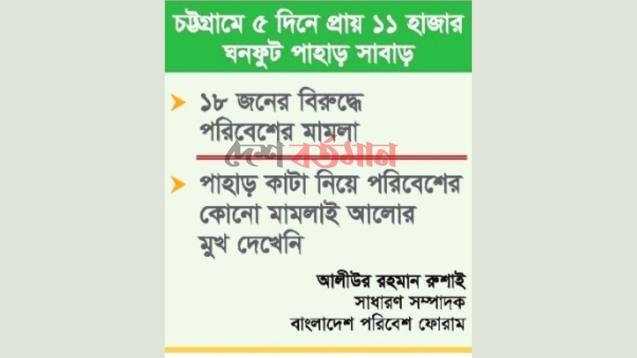 গতকাল মঙ্গলবার দুপুরে মামলার বাদি ও চট্টগ্রাম মহানগর কার্যালয়ের পরিদর্শক মো. মনির হোসেন দৈনিক দেশ বর্তমানকে জানান, সরেজমিনে একাধিকবার পরিদর্শন করে ৫দিনে ৫টি স্পটে ১০ হাজার ৭৫০ ঘনফুট পাহাড় কাটার প্রমাণ পেয়েছি। প্রমাণ সাপেক্ষে ভূমি অফিসের সহায়তায় ১৮ জনকে চিহ্নিত করে মামলা করেছি। বর্তমানে মামলাটির তদন্ত চলছে।