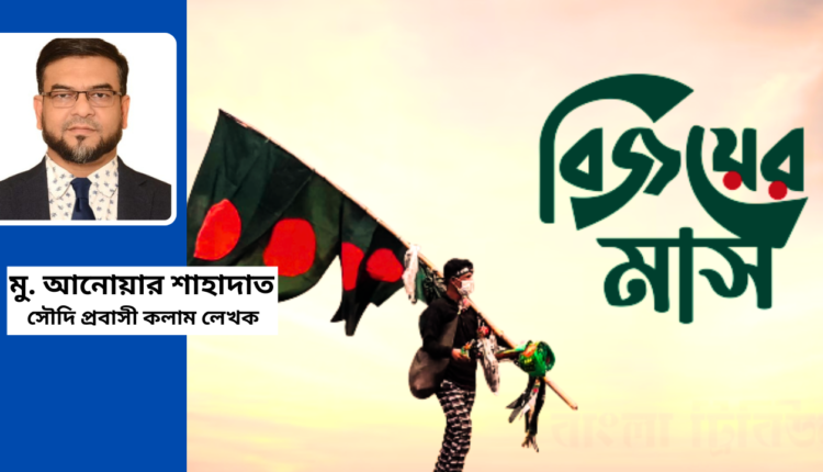 ডিসেম্বর আমাদের বিজয়ের মাস। পরাধীনতার শৃঙ্খল থেকে মুক্তির মাস। বিশ্বের মানচিত্রে ‘বাংলাদেশ’ নামক একটি রাষ্ট্রের জায়গা করে নেয়ার মাস। বাঙালি জাতির গর্ব আর অহংকারের মাস। এটি কেবলই একটি মাস নয় বরং একটি রক্তাক্ত ইতিহাস! ডিসেম্বর মাস বাঙালি জাতিসত্তার অনন্য চেতনার মাস। লক্ষ শহীদের স্মৃতি বিজড়িত মাস। বীরাঙ্গনাদের করুণ ইতিহাসের মাস। লাল-সবুজের পতাকার মাস। প্রাণপন লড়াইয়ের মাস।