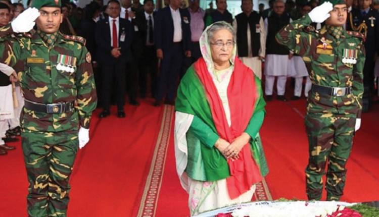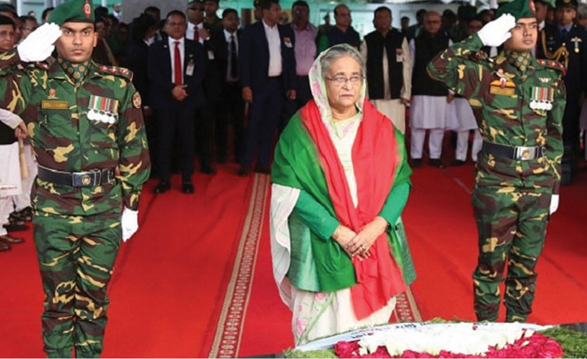 এর আগে মহান বিজয় দিবস উপলক্ষ্যে সাভারে জাতীয় স্মৃতিসৌধে বীর শহীদদের ফুল দিয়ে শ্রদ্ধা নিবেদন করেন রাষ্ট্রপতি মো. সাহাবুদ্দিন ও প্রধানমন্ত্রী শেখ হাসিনা। প্রথমে রাষ্ট্রপতি সাহাবুদ্দিন জাতীয় স্মৃতিসৌধের বেদীতে পুষ্পস্তবক অর্পণ করেন। পরে প্রধানমন্ত্রী শেখ হাসিনা পুষ্পস্তবক অর্পণ করেন।