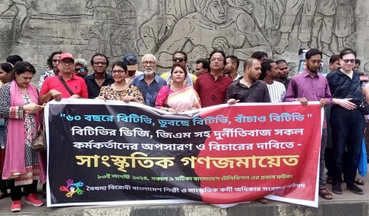 অন্তর্বর্তীকালীন সরকার গঠনের পর বাংলাদেশ টেলিভিশনের নানা দুর্নীতি ও অনিয়ম নিয়ে সোচ্চার হয়েছেন বৈষম্যবিরোধী শিল্পী ও কলাকুশলীরা।