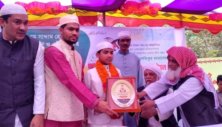 কাতারে অনুষ্ঠিত তিজান আন-নূর আন্তর্জাতিক কোরআন তেলাওয়াত প্রতিযোগিতায় ১ম স্থান অর্জনকারী হাফেজ ক্বারী মুশফিকুর রহমানকে সংবর্ধনা দিয়েছেন কক্সবাজার জেলা ছাত্রলীগের সভাপতি এসএম সাদ্দাম হোসাইন।