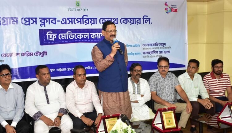 চট্টগ্রাম প্রেস ক্লাবে স্বাস্থ্যসেবা ক্যাম্পের উদ্বোধনীতে চসিক মেয়র রেজাউল করিম