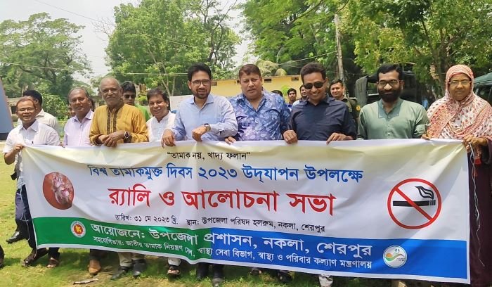 ‘তামাক নয়, খাদ্য ফলান’ প্রতিপাদ্যকে সামনে রেখে বিশ্ব তামাকমুক্ত দিবস উপলক্ষে শেরপুরের নকলায় র্যালি ও আলোচনা সভা অনুষ্ঠিত হয়েছে।