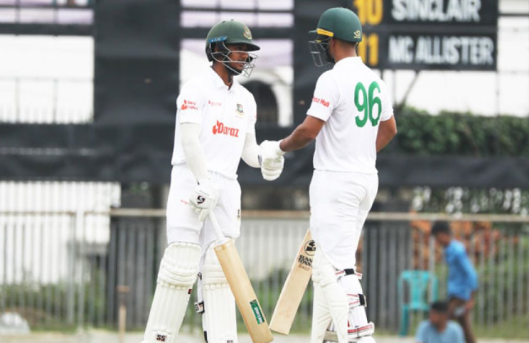 কিন্তু শেষ বিকেলে অ্যান্ডারসন ফিলিপের লাফিয়ে উঠা বল বোঝার আগেই ক্যাচ আউট হন ইরফান শুক্কুর। তার ২১ রানের ইনিংস আসে ৩৩ বল থেকে। এরপর নাইম হাসানকে নিয়ে দিনের শেষটা করেন শাহাদত হোসেন দিপু। নাইম অপরাজিত থাকেন ১২ রানে। ৭৭ বল খেলে ফেলা দিপুর সংগ্রহে ২৮ রান।