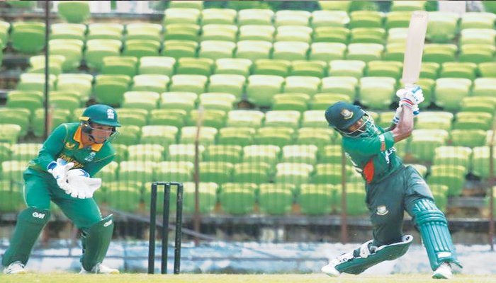 খুলনার শেখ আবু নাসের স্টেডিয়ামে শুক্রবার (৭ জুলাই) ব্যাটিংয়ে নেমে ২৯ ওভারে ৮ উইকেট হারিয়ে ১৪৫ রান তোলে সাউথ আফ্রিকা।  তবে বৃষ্টি আইনে বাংলাদেশের লক্ষ্য দাঁড়ায় ১৬৩ রান। এমন লক্ষ্য তাড়া করতে নেমে ইনিংসের প্রথম ওভারেই উইকেট হারায় স্বাগতিকরা।