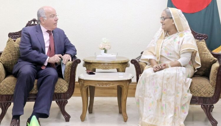 বাংলাদেশ থেকে সরাসরি তৈরি পোশাক (আরএমজি) পণ্য আমদানি করতে ব্রাজিলকে আহ্বান জানিয়েছেন প্রধানমন্ত্রী শেখ হাসিনা। তিনি বলেন, ‘বাংলাদেশ থেকে আরএমজি পণ্য তৃতীয় পক্ষের মাধ্যমে সীমিত পরিসরে ব্রাজিলে রফতানি করা হচ্ছে। দেশটি সরাসরি বাংলাদেশ থেকে আরএমজি পণ্য আমদানি করলে ব্রাজিলের জন্য এটি আরও সাশ্রয়ী হবে।’ সোমবার (৮ এপ্রিল) সকালে ব্রাজিলের পররাষ্ট্রমন্ত্রী মাউরো ভিয়েরার নেতৃত্বে একটি প্রতিনিধিদল প্রধানমন্ত্রীর সঙ্গে তার কার্যালয়ে সৌজন্য সাক্ষাৎ করেন। এ সময় শেখ হাসিনা এ আহ্বান জানান। বৈঠক শেষে প্রধানমন্ত্রীর স্পিচ রাইটার এম নজরুল ইসলাম সাংবাদিকদের ব্রিফ করেন। বাংলাদেশ ও ব্রাজিলের মধ্যে বাণিজ্যিক ভারসাম্য নিশ্চিত করার প্রয়োজনীয়তার ওপর জোর দিয়ে শেখ হাসিনা বলেন, ‘দুই দেশের মধ্যে বাণিজ্যিক ভারসাম্য ব্রাজিলের দিকে ঝুঁকছে। এই ভারসাম্য নিশ্চিত করতে ব্রাজিল বাংলাদেশ থেকে পাট ও পাটজাত পণ্য এবং চামড়াজাত পণ্যসহ আরও পণ্য আমদানি করতে পারে।’ সরকারপ্রধান বলেন, ‘ব্রাজিল থেকে মূলত চিনি, সয়াবিন তেল ও তুলা আমদানি করে বাংলাদেশ। দুই দেশের মধ্যে দ্বিপাক্ষিক বাণিজ্য বাড়ানোর বিশাল সুযোগ রয়েছে।’ তিনি বাংলাদেশ ও ব্রাজিলের মধ্যে বিদ্যমান দ্বিপাক্ষিক সম্পর্ক বৃদ্ধির প্রয়োজনীয়তার ওপরও জোর দেন।