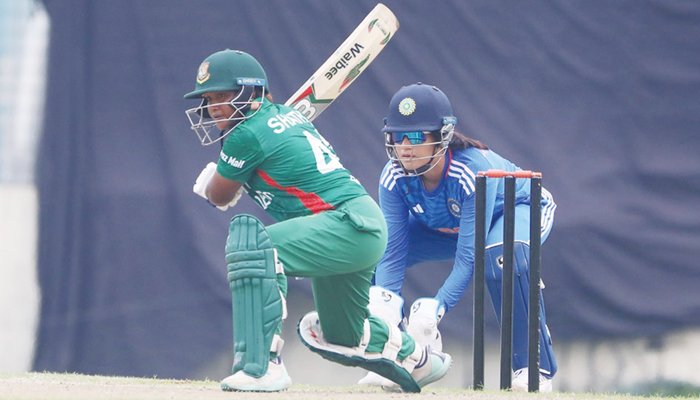 এর আগে শুরুতে টসে জিতে স্বাগতিকদের ব্যাটিংয়ে পাঠায় ভারত।  শুরুতেই দলীয় ২৭ রানের মাথায় অভিষিক্ত মিন্নু মনি’র বলে ক্যাচ দিয়ে প্যাভিলয়নে  ফেরেন টাইগ্রেসদের উইকেট-কিপার ব্যাটার শামিমা সুলতানা।  তিনি ১৩ বলে ১৭ রান করেন।
