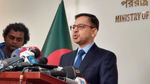 গণতান্ত্রিক ধারাবাহিকতা রক্ষায় ভারত সব সময় বাংলাদেশের পাশে ছিল ও আছে বলে জানিয়েছেন পররাষ্ট্রমন্ত্রী ড. হাছান মাহমুদ। পররাষ্ট্র মন্ত্রণালয়ে ঢাকায় ভারতীয় হাইকমিশনারের সঙ্গে সৌজন্য সাক্ষাৎ শেষে সাংবাদিকদের ব্রিফ করছেন মন্ত্রী। সোমবার (১৫ জানুয়ারি) পররাষ্ট্র মন্ত্রণালয়ের নতুন ভবনে সাংবাদিকদের সঙ্গে আলাপকালে তিনি এমন মন্তব্য করেন। এর আগে ঢাকায় ভারতীয় হাইকমিশনার প্রণয় কুমার ভার্মার সঙ্গে তিনি সৌজন্য সাক্ষাৎ করেন।