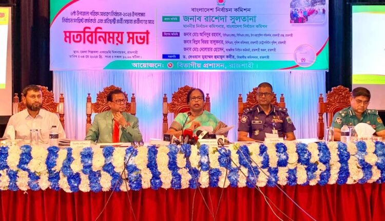 ৬ষ্ঠ উপজেলা পরিষদ নির্বাচন উপলক্ষে শনিবার (৪ মে) সকালে প্রার্থী ও নির্বাচন কর্মকর্তাদের নিয়ে আয়োজিত মতবিনিময় সভায় প্রধান অতিথির বক্তব্যে নির্বাচন কমিশনার রাশেদা সুলতানা এসব কথা বলেন। জেলা শিল্পকলা একাডেমি মিলনায়তনে এ অনুষ্ঠান আয়োজন করে বিভাগীয় প্রশাসন।