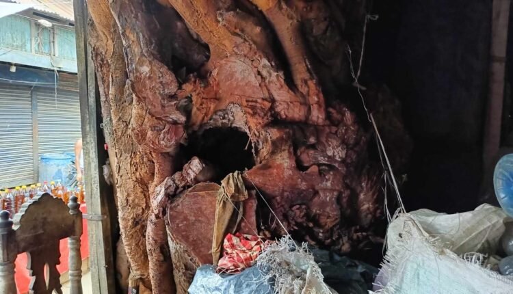 ব্যবসায়ীদের তথ্যমতে, পৌর শহরের মধ্য বাজারের এই বটগাছটির নিচে মূলত গোলাম মোস্তফা নামক এক ব্যক্তির তেলের দোকান। তিনিই মূলত পাঁচ বছর আগে টিনের বেড়া দিয়ে এই বটগাছটিকে তার দোকানের ভিতরে আবদ্ধ করেন। ২০২২ সালে একবার এই গোলাম মোস্তফা প্রথম এই বটগাছটির ডালপালা কাটেন। পরে দোকানে আবদ্ধ থাকা গাছের গোড়া ও শিকড় পর্যায়ক্রমে কাটতে থাকেন তিনি। গাছটিকে মেরে ফেলার জন্য বিষ স্প্রে ও করা হয়। বিষয়টিকে ঘিরে প্রতিবাদ করেন এলাকাবাসী।