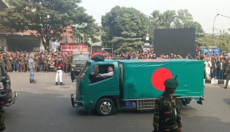 বিএনপি চেয়ারপারসন ও সাবেক প্রধানমন্ত্রী বেগম খালেদা জিয়ার মরদেহ মানিক মিয়া অ্যাভিনিউয়ে প্রবেশ করেছে। আজ বুধবার দুপুর ১২টার একটু পরে খালেদা জিয়ার কফিন জাতীয় পতাকায় মোড়ানো গাড়ি সংসদ ভবনের দক্ষিণ প্লাজায় প্রবেশ করে। বেলা ২টায় তার নামাজে জানাজা অনুষ্ঠিত হওয়ার কথা রয়েছে। জানাজা নামাজে ইমামতি করবেন জাতীয় মসজিদ বায়তুল মোকাররমের খতিব আব্দুল মালেক।