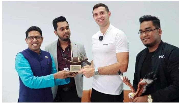 আর্জেন্টিনার বিশ্বকাপজয়ী গোলরক্ষক এমিলিয়ানো মার্টিনেজ এখন বাংলাদেশে। সোমবার (৩ জুলাই) ভোরে ঢাকায় পা রাখেন এই তারকা। তার সঙ্গে এসেছেন কয়েকজন ব্যক্তিগত স্টাফও। কলকাতার ক্রীড়া সংগঠক শতদ্রু দত্তের আমন্ত্রণে ভারতীয় উপমহাদেশ সফরে আসেন মার্টিনেজের। তার বাংলাদেশ সফরের স্পন্সর ফান্ডেড নেক্সট।