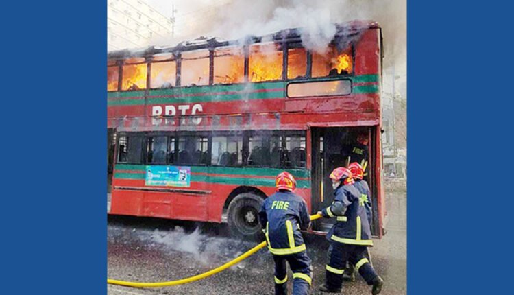 মিরপুরে বিআরটিসির দোতলা বাসে আগুন