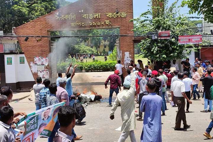 মঙ্গলবার (১৮ জুলাই) বেলা সাড়ে ১১টার দিকে মিরপুর বাংলা কলেজ গেটের সামনে এ সংঘর্ষের ঘটনা ঘটে।