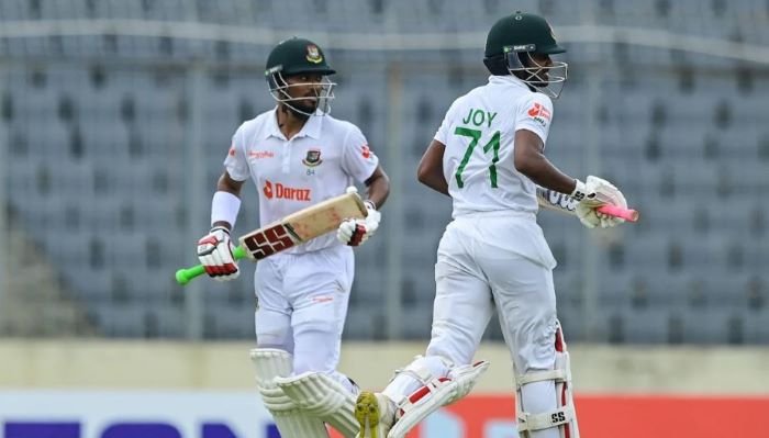শুরুতেই উইকেট হারিয়ে চাপে পড়েছিল বাংলাদেশ। তবে নাজমুল হোসেন শান্ত ক্রিজে এসে সেই চাপ সরিয়ে দেন বোলারদের ওপর। মাহমুদুল হাসান জয়ের সঙ্গে গড়েন দারুণ এক জুটি।
