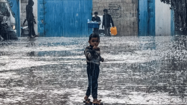 গাজার দক্ষিণাঞ্চলে, অস্থায়ীভাবে বাসকারী হাজার হাজার ফিলিস্তিনিদের তাঁবুতে প্রবেশ করেছে বৃষ্টির পানি। এতে তাদের জিনিসপত্র ভিজে নষ্ট হয়ে যাচ্ছে। এছাড়াও তাদের থাকার বিছানা স্যাঁতসেঁতে হয়ে গেছে।