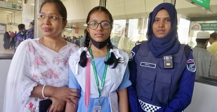 রাজধানীর ভিকারুননিসা নূন স্কুল অ্যান্ড কলেজের পঞ্চম শ্রেণির ছাত্রী দিপাঞ্জলি রায় (১১)। মায়ের সঙ্গে আগারগাঁও থেকে মতিঝিলে যেতে মেট্রোরেলে উঠে হারিয়ে যায় দিপাঞ্জলি। এরপর বেশকিছু সময় খোঁজ করে সন্তানকে না পেয়ে ম্যাস র্যাপিড ট্রানজিট (এমআরটি) পুলিশের সহায়তা চান দিপাঞ্জলির মা সুমি রানী রায়। পরে তাকে খুঁজে বের করে এমআরটি পুলিশ। জানা যায়, সন্তানকে হারিয়ে সুমি রানী রায় দিগ্বিদিক ছোটাছুটি করছিলেন। পরে তিনি কর্তব্যরত এমআরটি পুলিশের সহায়তা চান। সময়ক্ষেপণ না করে সুমি রানী রায়ের কাছ থেকে দিপাঞ্জলির বর্ণনা শুনে পরবর্তী স্টেশনে হারানো খবর জানিয়ে দেয় পুলিশ। এরপর ফার্মগেট স্টেশনে কর্মরত এমআরটি পুলিশ সদস্যরা ট্রেন থেকে বর্ণনা অনুযায়ী ওই শিক্ষার্থীকে খুঁজে বের করে। তারা আগের স্টেশনে ছবি পাঠালে সুমি রানী তার মেয়েকে শনাক্ত করেন। বুধবার (১৫ নভেম্বর) বিকেলে এমআরটি পুলিশের অতিরিক্ত পুলিশ সুপার (অপস অ্যান্ড ইন্ট.) মাহমুদ খান এসব তথ্য জানান। তিনি জানান, মূলত ফাইনাল পরীক্ষার টেনশনে অনেকটা বেখেয়ালে মায়ের কাছ থেকে বিচ্ছিন্ন হয়ে যায় দিপাঞ্জলি। পরে ফার্মগেট স্টেশনে সুমি রানীর কাছে তার সন্তানকে ফিরিয়ে দেন এমআরটি পুলিশের সদস্যরা। দিপাঞ্জলিকে তার মায়ের কাছে নিরাপদে পৌঁছে দিতে এমআরটি পুলিশ আনন্দিত বলেও জানান পুলিশের এ কর্মকর্তা।