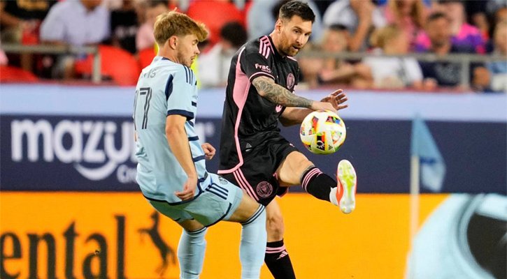 পাঁচ ম্যাচ ধরে হারতে থাকা ইন্টার মায়ামিও তার ছোঁয়ায় দুর্দশা কাটিয়ে পেল জয়ের আনন্দ। আজ মেজর লিগ সকারে স্পোর্টিং কানসাস সিটিকে ৩-২ গোলে হারিয়েছে তারা। বক্সের বাইরে থেকে অসাধারণ গোলের পাশাপাশি দারুণ একটি অ্যাসিস্টও করেন মেসি। যদিও অ্যারোহেড স্টেডিয়ামে ম্যাচের ষষ্ঠ মিনিটেই এরিক থমির গোলে এগিয়ে যায় কানসাস। তবে সেই লিড বেশিক্ষণ ধরে রাখতে পারেনি তারা। ১৮তম মিনিটে বক্সের অনেকটা বাইরে থেকে নিখুঁত এক পাস দেন মেসি। যা গোলে পরিণত করেন দিয়েগো গোমেস।