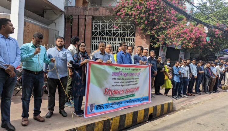 শনিবার (৩ ডিসেম্বর) সকালে চট্টগ্রাম প্রেসক্লাব চত্ত্বরে এক বিক্ষোভ সমাবেশ থেকে এই দাবি জানানো হয়। সংগঠনের সভাপতি নাসির উদ্দিন তোতার সভাপতিত্বে এই বিক্ষোভ সমাবেশে চট্টগ্রামের বিভিন্ন সাংবাদিক সংগঠনের নেতৃবৃন্দ উপস্থিত ছিলেন।