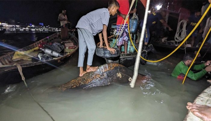 রবিবার (১৬ জুলাই) রাত ৮টার দিকে এই দুর্ঘটনা ঘটে। রাত সোয়া ৮টায় এই দুর্ঘটনার খবর পায় ফায়ার সার্ভিস। পরে ফায়ার সার্ভিসের পাশাপাশি কোস্টগার্ডের ডুবুরি দল উদ্ধার কাজ শুরু করে।