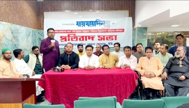 এসময় বক্তারা বলেন, দেশ ও প্রবাসের পাঠক নন্দিত পত্রিকা দৈনিক যায়যায়দিন দেশের ১৮ কোটি মানুষের প্রতিবাদী কন্ঠস্বর হয়ে সকল ক্লান্তি কাল অতিক্রম করে বেশ সুনামের সাথে পাঠকপ্রিয়তা ধরে রেখেছে। জুলাই গণঅভ্যুত্থান পরবর্তী সময়ে যেখানে সুষমবন্টন, ন্যায়বিচার এবং আইনের শাসন প্রতিষ্ঠা, দখল চাঁদাবাজমুক্ত ও বৈষম্যহীন বাংলাদেশ গড়ার অঙ্গীকার ছাত্র-জনতার! সেখানে একটি স্বাধীন গণমাধ্যম জবরদখল করে শহীদের রক্তে কালিমা লেপন করেছে একটি চক্র।