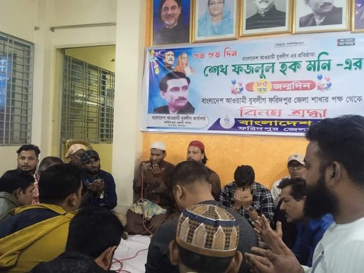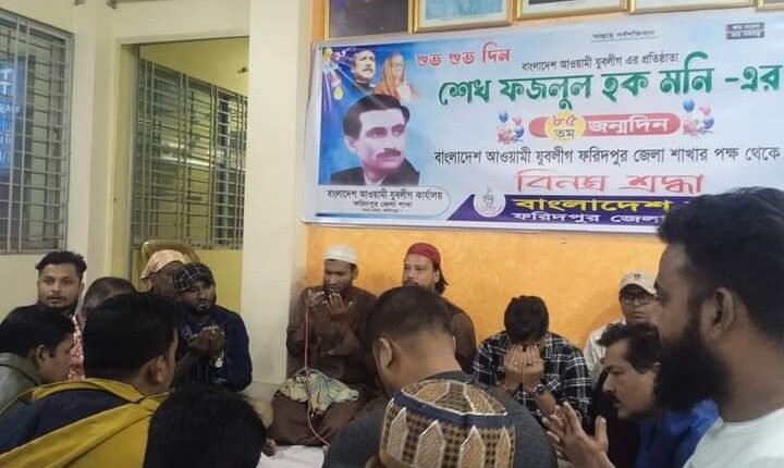 মহান মুক্তিযুদ্ধের অন্যতম সংগঠক, বাংলাদেশ আওয়ামী যুবলীগের প্রতিষ্ঠাতা চেয়ারম্যান,বীর মুক্তিযোদ্ধা শহীদ শেখ ফজলুল হক মনি’র ৮৫ তম জন্মদিন উপলক্ষে ফরিদপুর জেলা যুবলীগের উদ্যোগে আলোচনা সভা ও দোয়া মাহফিল অনুষ্ঠিত হয়।