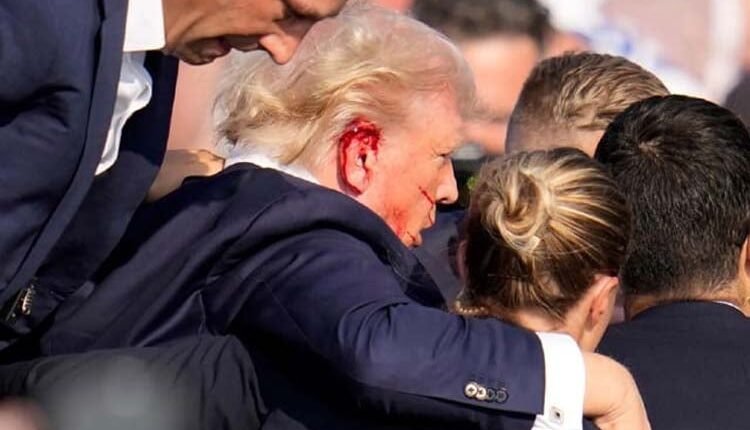 গুলি লাগার পর ট্রাম্প ডান হাত দিয়ে তাঁর ডান কান চেপে ধরেন। এরপর হাঁটু গেড়ে মঞ্চে বসে পড়েন তিনি। দ্রুত ছুটে আসেন সিক্রেট সার্ভিসের সদস্যরা। ঘিরে ফেলেন ট্রাম্পকে।