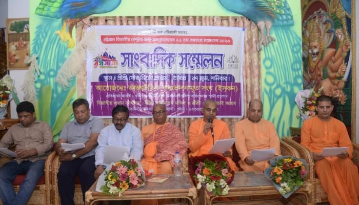 সাংবাদিক সম্মেলনে আগামী ২০ জুন থেকে ২৮ জুন পর্যন্ত নন্দনকানন শ্রীশ্রী রাধামাধব মন্দির এবং ডিসি হিল প্রাঙ্গন থেকে বিভাগীয় কেন্দ্রীয় ইস্কনের তত্ত্বাবধানে চট্টগ্রাম ইসকন আয়োজিত ২৬তম রথযাত্রা উৎসব আড়ম্বরভাবে উদযাপন করা হবে এবং ৭ দিনব্যাপী জে. এম সেন হলে ভাগবদ সপ্তাহ পালন হবে।