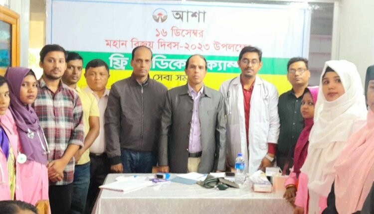 মহান বিজয় দিবস উপলক্ষে রাঙ্গুনিয়ায় “আশা স্বাস্থ্যসেবা কেন্দ্রে” দিনব্যাপি বিনামূল্যে চিকিৎসা সেবা দেওয়া হয়েছে। বুধবার (১৩ ডিসেম্বর) সকাল ৯ টা থেকে উপজেলার পদুয়া ইউনিয়নের রাজারহাট স্বাস্থ্যসেবা কেন্দ্রে প্রায় ৩০০ রোগীকে বিনামূল্যে ডায়াবেটিস পরীক্ষা, রক্তচাপ নির্ণয়, ব্যবস্থাপত্র, আনুসঙ্গিক সেবা দেন চিকিৎসকরা।