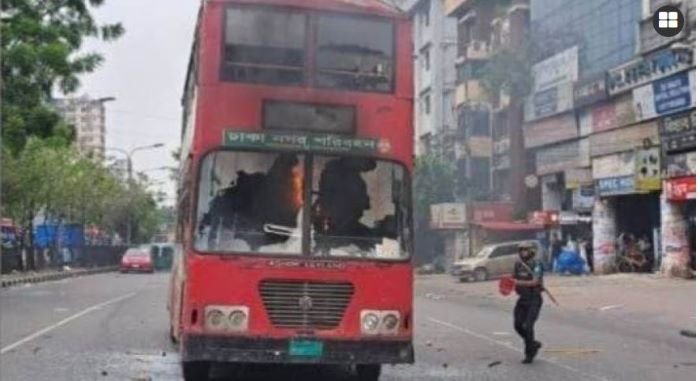 রাজধানীতে পুলিশের সঙ্গে বিএনপি নেতাকর্মীদের সংঘর্ষ, বাসে আগুন