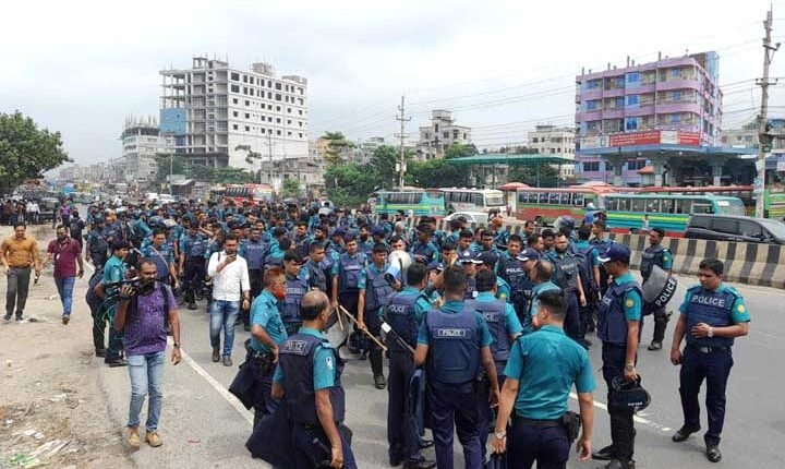 বিএনপির অবস্থান কর্মসূচিকে ঘিরে রাজধানীর সব প্রবেশমুখে বিপুল সংখ্যক আইনশৃঙ্খলা বাহিনীর সদস্য মোতায়েন করা হয়েছে।