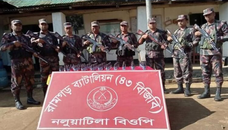 রামগড়ে ৭৩ বোতল ভারতীয় ফেন্সিডিল উদ্ধার করল বিজিবি