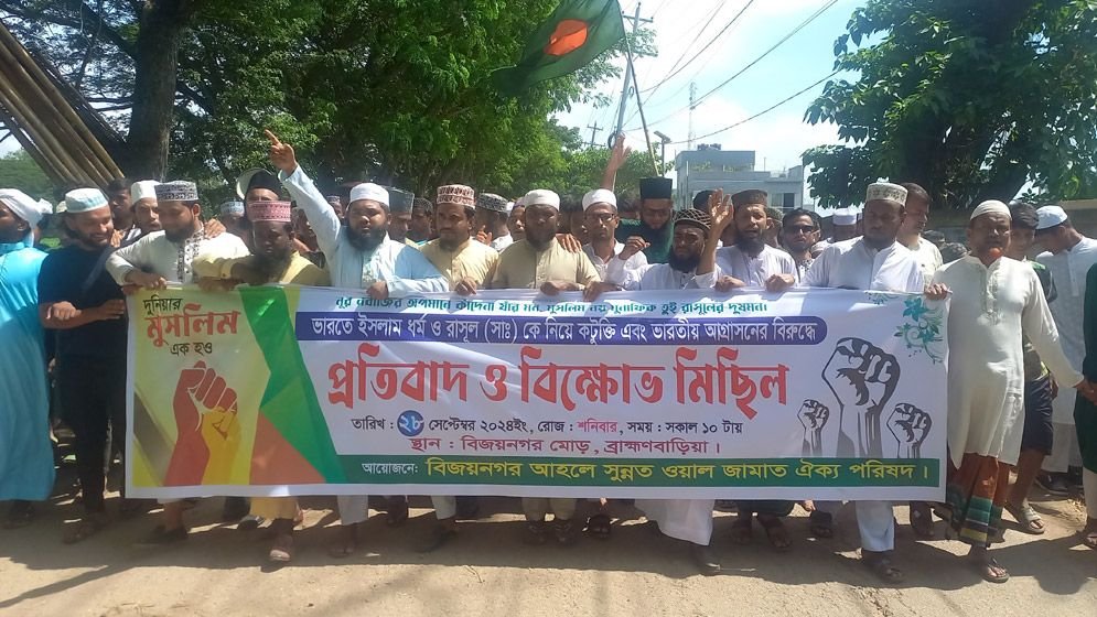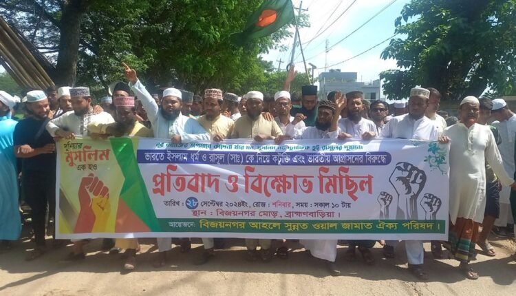 মহানবি হজরত মুহাম্মদ (সা.)-কে নিয়ে ভারতীয় পুরোহিতের কটূক্তি ও ধর্মীয় অনুভূতিতে আঘাতের প্রতিবাদে ব্রাহ্মণবাড়িয়া বিজয়নগরে বিক্ষোভ মিছিল ও সমাবেশ করেছে বিজয়নগর আহলে সুন্নত ওয়াল জামাত ঐক্য পরিষদ।