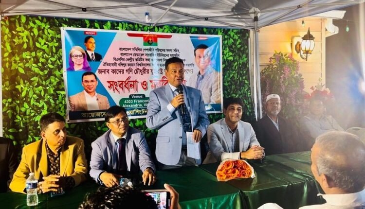 বাংলাদেশ সম্মিলিত পেশাজীবী পরিষদের সদস্য সচিব ও বাংলাদেশ ফেডারেল সাংবাদিক ইউনিয়নের মহাসচিব কাদের গনি চৌধুরীর যুক্তরাষ্ট্রে আগমন উপলক্ষ্যে প্রবাসী বাংলাদেশীরা এ অনুষ্ঠানের আয়োজন করে।