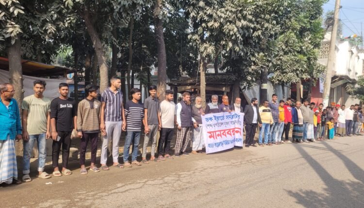 রূপগঞ্জে ডকইয়ার্ডের স্যান্ডব্লাস্টিং বন্ধে এলাকাবাসীর মানববন্ধন