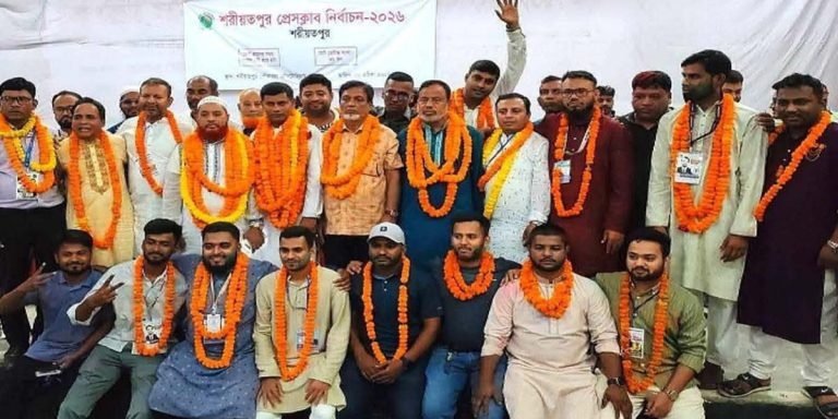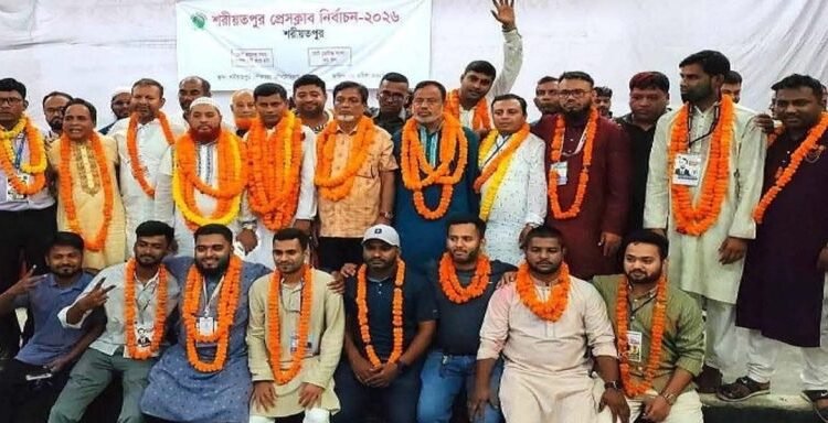 শরীয়তপুর প্রেসক্লাব নির্বাচন-২০২৬ অনুষ্ঠিত হয়েছে। সভাপতি পদে মোঃ আবুল হোসেন সরদার ও সাধারণ সম্পাদক পদে মোঃ নূরুল আমীন রবীন বিজয় হয়েছেন। মঙ্গলবার (২৮ এপ্রিল) সন্ধ্যায় ভোটগ্রহণ শেষে ফলাফল ঘোষণা করেন জেলা তথ্য কর্মকর্তা ও প্রধান নির্বাচন কমিশনার শাহিন মিয়া। শরীয়তপুর প্রেসক্লাব নির্বাচন-২০২৬, মোট ভোটার সংখ্যা ৯৯, নির্বাচনে ২১টি পদের বিপরীতে মোট ৪৮ জন প্রার্থী প্রতিদ্বন্দ্বিতা করেন।
