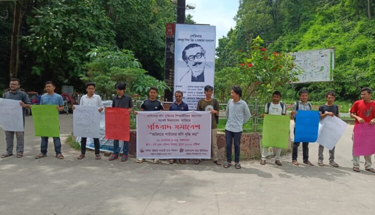 মঙ্গলবার (১২ সেপ্টেম্বর) দুপুর সাড়ে বারোটায় বিশ্ববিদ্যালয়ের স্বরণ চত্বরে (জিরো পয়েন্টে) প্রতিবাদ সমাবেশটি অনুষ্ঠিত হয়।