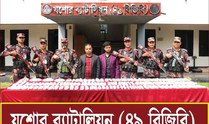 যশোরের নাভারন সাতক্ষীরা রোড হতে ৭০কেজি ৫শত গ্রাম ভারতীয় রুপার অলংকার সহ পিতা পুত্র আটক করেছেন ৪৯ ব্যাটালিয়ন বিজিবি সদস্যরা। ২২ফেব্রুয়ারি শনিবার শার্শা থানার নাভারণ-সাতক্ষীরা মোড় এলাকায় হামদান পরিবহন থেকে আটক করা হয়। আটককৃতরা হলেন যশোরের শার্শা থানার বাগআঁচড়া এলাকার বাগুড়ী গ্রামের মৃত কাসেম আলীর ছেলে জাহাঙ্গীর কবির লিটু (৪৮) ও তার ছেলে মোঃ মেহেদী হাসান (২৫)। যশোর ব্যাটালিয়ন (৪৯ বিজিবি) এর অধিনায়ক লেঃ কর্নেল সাইফুল্লাহ্ সিদ্দিকী, এসপিসি, পিএসসি জানান, দীর্ঘদিন যাবত স্বর্ণ, রুপা, মাদক, ডলার, রুপি, হুন্ডি ও চোরাচালান মালামাল আটকের নিমিত্তে সীমান্ত এলাকায় বিজিবি’র বিশেষ পরিকল্পনা অনুযায়ী গোয়েন্দা তৎপরতাসহ অভিযান জোরদার করা হয়েছে।