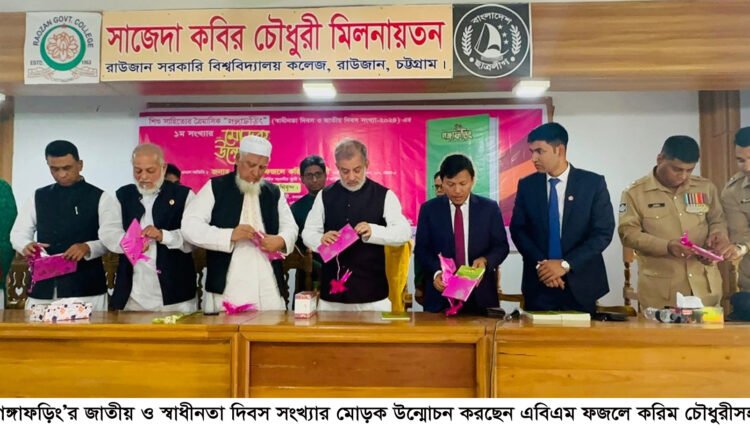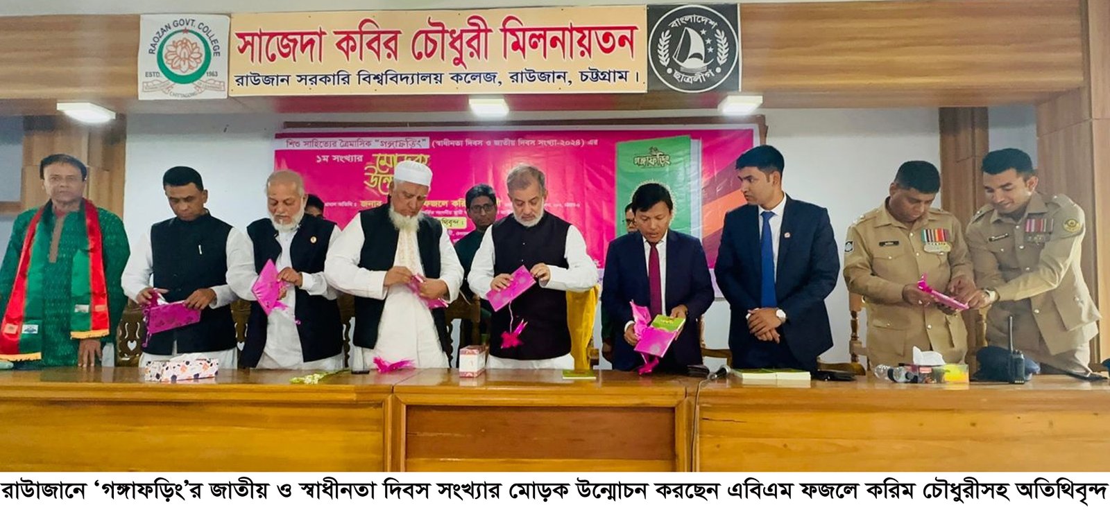 গত মঙ্গলবার (২৬ মার্চ) রাউজান সরকারি কলেজের সাজেদা কবির চৌধুরী মিলনায়তনে মহান স্বাধীনতা দিবস উপলক্ষে রাউজান উপজেলা প্রশাসন প্রকাশিত শিশুসাহিত্যের ত্রৈমাসিক ‘গঙ্গাফড়িং’র জাতীয় ও স্বাধীনতা দিবস সংখ্যার (প্রথম বর্ষের প্রথম সংখ্যা) মোড়ক উন্মোচন অনুষ্ঠানে তিনি এসব কথা বলেন।